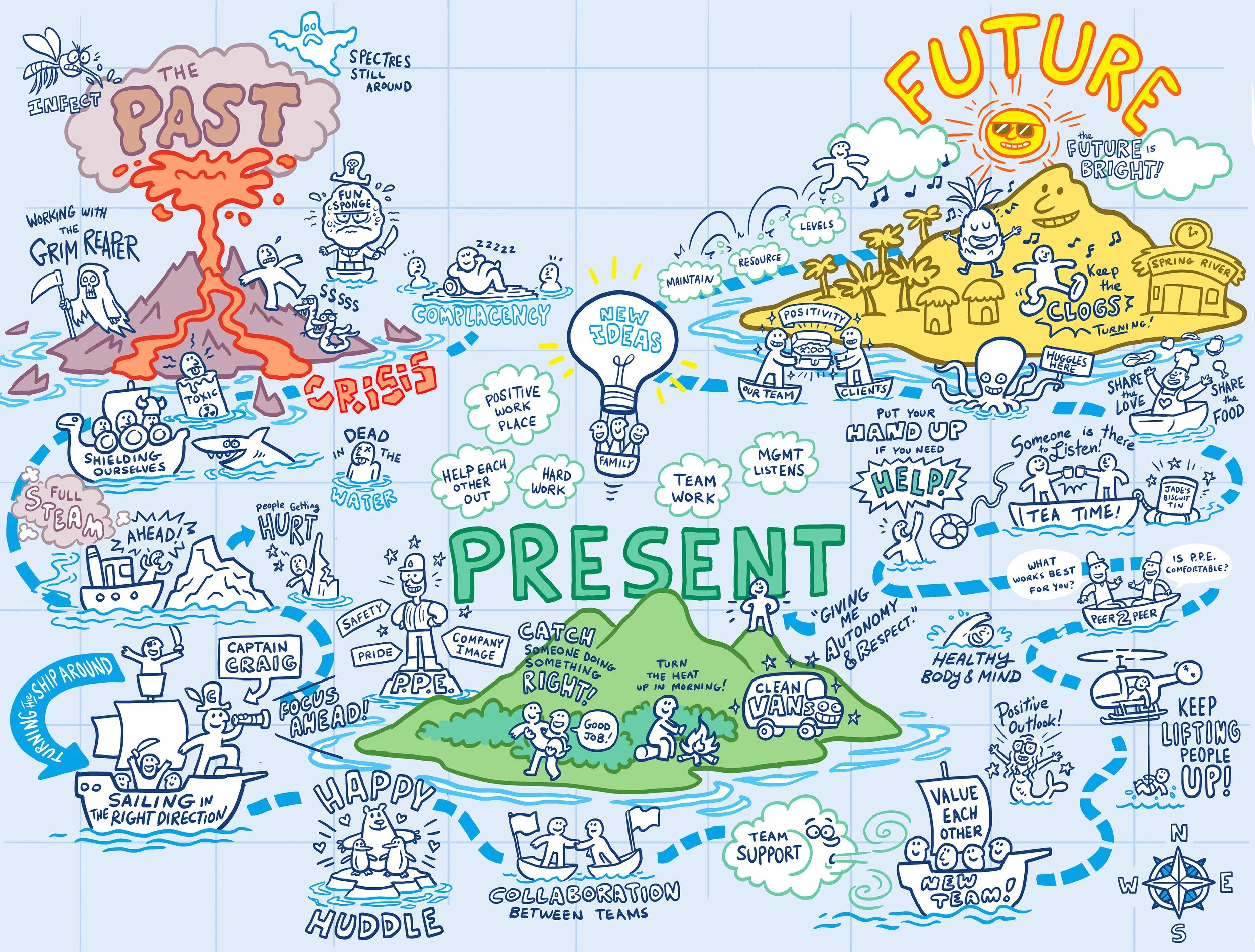 Mapping the client’s past, present and future within a nautical-themed rich picture.